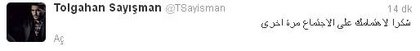 Geçtiğimiz gün Lale Devri'ni bırakacağını Twitter'da yazan Tolgahan Sayışman, Arapça bir mesaj yazdı