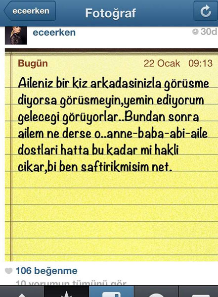 Ece Erken, uzun zamandır sürekli birlikte her yere gittiği Oktay Derelioğlu'nun eşi Sezer Derelioğlu ile kavga etti. İsim vermeden Derelioğlu'nu eleştiren Erken, 'Aileniz bir kız arkadaşınızla görüşme diyorsa görüşmeyin. Yemin ediyorum geleceği görüyorlar. Bundan sonra ailem ne derde o... Anne- baba- abi aile dostları hatta bu kadar mı haklı çıkar. Bir ben saftirikmişim net' diyerek sitem etti.