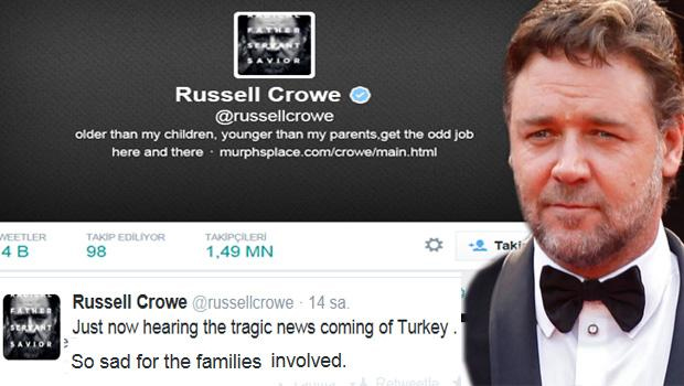 The Water Diviner adlı filminin bir bölümünü Türkiye'de çeken Russell Crowe'dan da Soma halkına destek geldi. Crowe, Twitter sayfasında 'Türkiye'den gelen trajik haberi şimdi duydum. İlgili aileler için çok üzgünüm' notunu paylaştı.