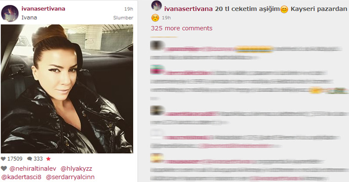 Ünlü modacı İvana Sert, Kayseri Pazarı'ndan 20 TL'ye aldığı ceketini Instagram hesabından takipçileriyle paylaştı.