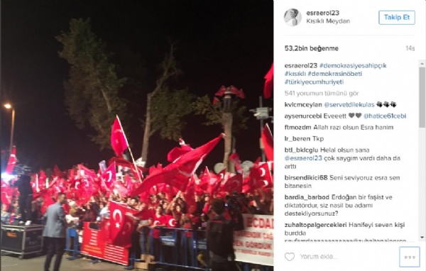 Dün gece ise Üsküdar Kısıklı'da gerçekleştirilen törene de katılmayı ihmal etmeyen Erol, sosyal medya hesabında paylaştığı fotoğrafların altına "Demokratik bir ülkede insanca hayatını sürdürebilmek için yaşamını hiçe sayan vatandaşlarımıza Allah'tan rahmet diliyorum" notunu düşerek sevenlerine demokrasiye sahip çık mesajını vermeyi de ihmal etmedi.