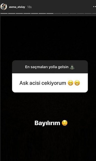 Atalay, ayrıca, 'Aşk acısı çekiyorum' yazan bir takipçisine, 'Bayılırım' karşılığını verdi.
