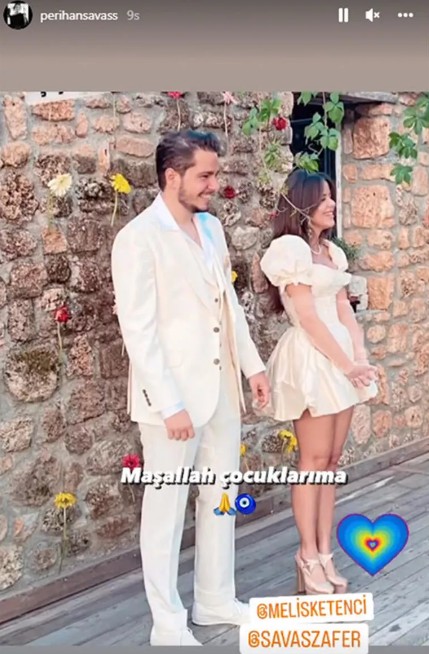 Perihan Savaş da oğlunu ve müstakbel gelininin mutluluk pozunu, "Maşallah çocuklarıma" notuyla paylaşmıştı.