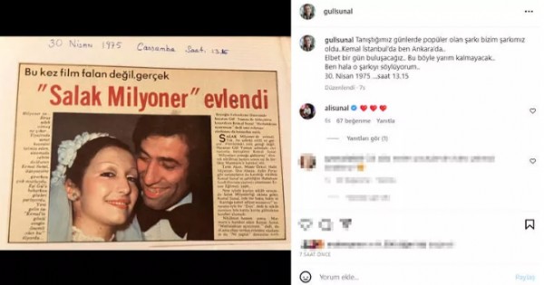 Gül Sunal, 1975'te hayatını birleştirdiği ve 3 Temmuz 2000'de geçirdiği kalp krizi sonucu hayatını kaybeden eşi Kemal Sunal ile evliliğinin 48'inci yılını kutladı. Gül Sunal'ın duygusal paylaşımına oğlu Ali Sunal da kayıtsız kalmadı.