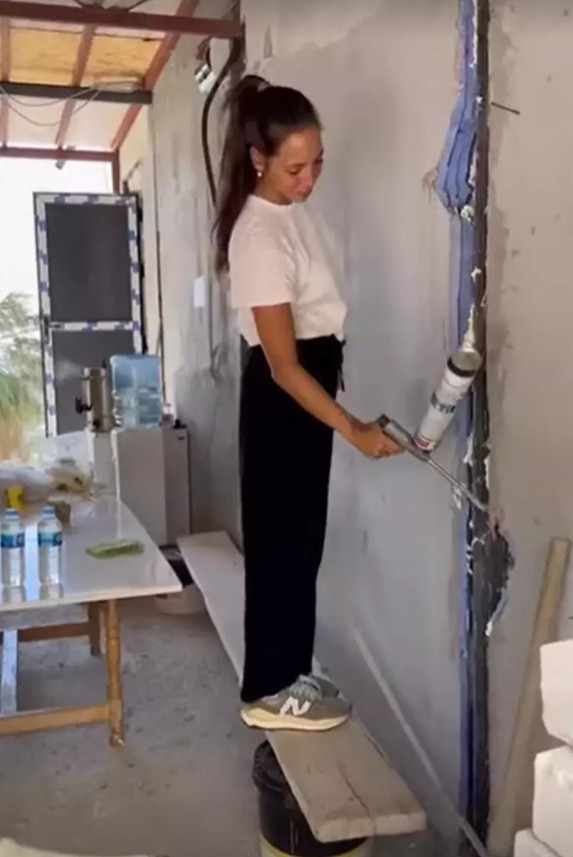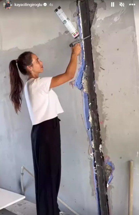 Bir binanın iç tasarımında görev alan 25 yaşındaki Çilingiroğlu'nun, duvar dolgusu yaptığı sırada çekilen görüntüsü kısa sürede sosyal medyada gündem oldu.