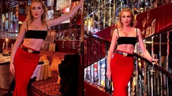 Kırmızı pantolon ve minik siyah büstiyeriyle poz veren Bilge Öztürk'e yorum yağdı.