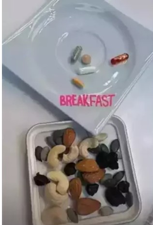 Kuruyemişler ve bazı takviye edici ilaçlardan oluşan bu kahvaltı, sosyal medyada şaşkınlık yaratmıştı.